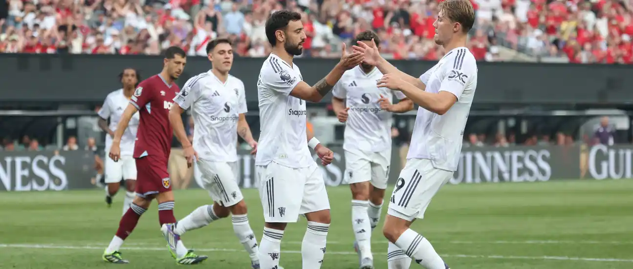 北京时间7月27日7:00,英超夏季赛循环赛第一轮,曼联对阵西汉姆联。B费表现出色,上半场点球一蹴而就为球队首开记录,下半场接梅努助攻兜射再得一分完成梅开二度。全场比赛结束,红魔2-1战胜西汉姆联。